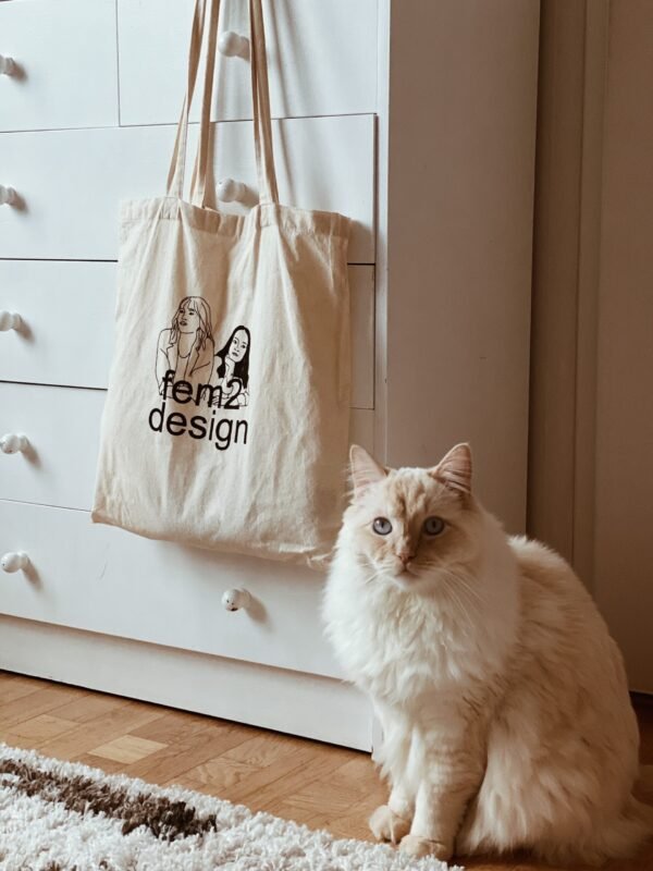Stötta småskaligt designhantverk genom att bära denna handtryckta tygpåse!
